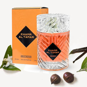 As a fragrance expert, I present to you Khamr Blue Oud 100ML. Experience the tropical top notes of coconut, mango, and passion fruit, followed by a delicate blend of orange blossom, jasmine, and solar accord. Finally, indulge in the warm base notes of cashmeran, vanilla, and musk.